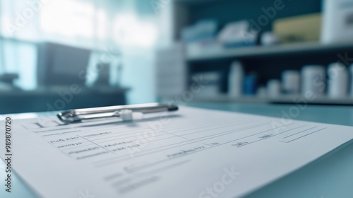 A close-up of a blank form with a pen, likely for medical or administrative use.