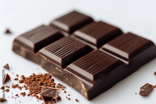 A close-up of a chocolate bar set against a white backdrop