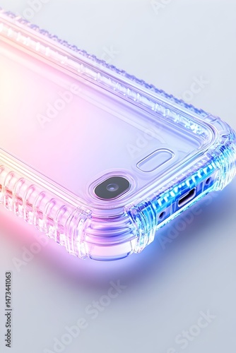 A close-up of a clear phone case with a rainbow-colored gradient effect