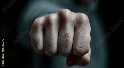 A close-up of a clenched fist, symbolizing strength and determination. The image evokes emotions related to empowerment and resilience in challenging situations.