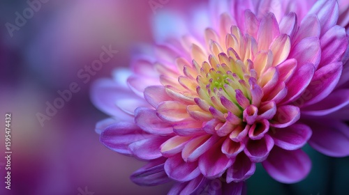 A closeup of a colorful chrysanthemum bloom captured with soft focus, highlighting its natural elegance.