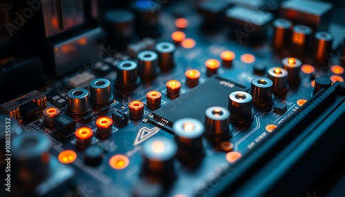 A close-up of a computer motherboard wallpaper with intricate components and glowing LEDs, highlighting the inner workings of technology.