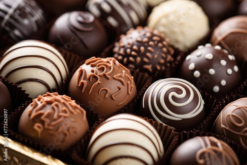 A close-up of a delectable chocolate truffle assortment in promoting artisanal chocolates or sweet indulgences,