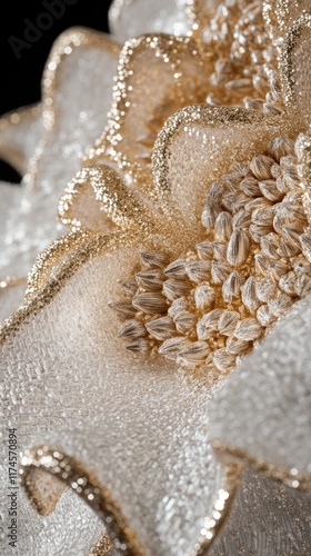 A close-up of a delicate flower with intricate details and textures.