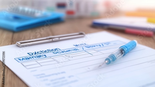 A close-up of a document with a pen, suggesting administrative or medical tasks.