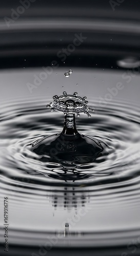 A close-up of a drop of water landing on a flat surface, with a ripple effect that spreads across the entire frame.