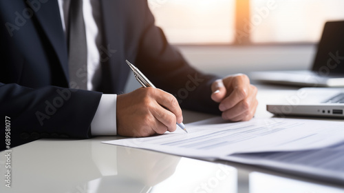 A close-up of a focused Head of Revenue Operations analyzing financial reports, Head of Revenue Operations, blurred background, with copy space