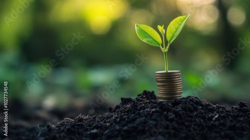 A close-up of a green plant with a stack of coins beside it, illustrating the growth of savings and the idea of nurturing financial resources