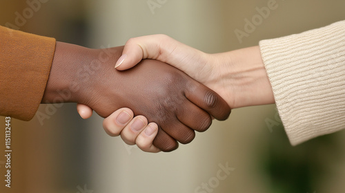 A close-up of a handshake between two individuals of diverse skin tones, symbolizing partnership and cooperation.
