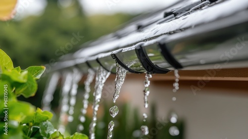 A Close-Up of a Home Rainwater Collection System, Showcasing Sustainable Water Use with Vibrant Colors and Lush Greenery