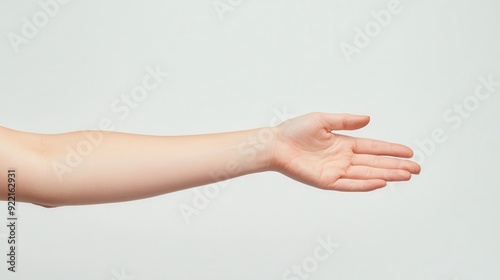 A close-up of a human hand reaching out, symbolizing communication, assistance, and connection in a minimalist setting.