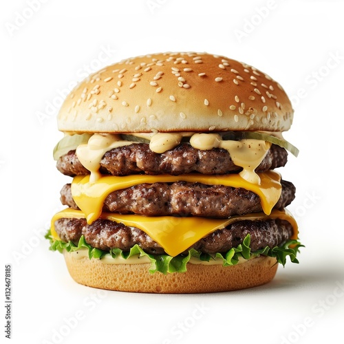 A Close-Up of a Juicy Double Cheeseburger on a Sesame Seed Bun