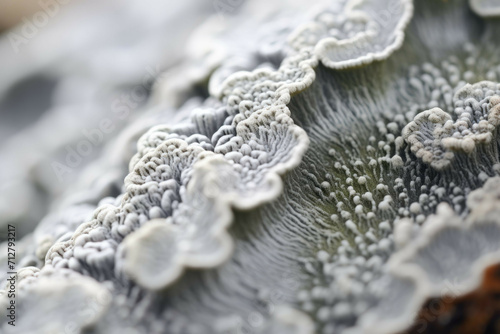 A close-up of a lichen, showing its intricate details and patterns, isolated on white background