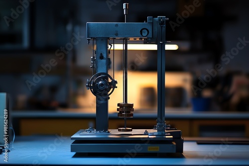 A Close-up of a Metallic Testing Machine with a Stack of Weights