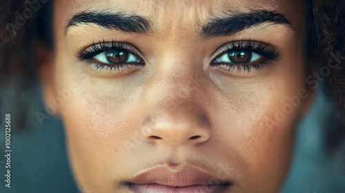 A close-up of a person's face showing deep concentration, with furrowed brows and slightly pursed lips, capturing intense focus.