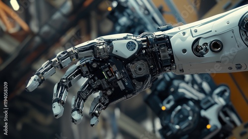A close-up of a robotic hand showcasing intricate mechanical components.