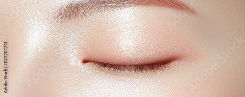 A close-up of a serene, closed eye, showcasing smooth skin and subtle highlights, emphasizing beauty and calmness.