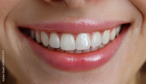 A close-up of a smiling woman showcasing bright, white teeth and a healthy, radiant smile.