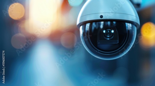 A close-up of a surveillance camera capturing urban scenery, showcasing clarity and focus with a blurred background highlighting security technology.