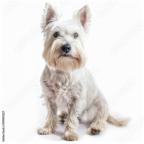 A close-up of a Westie reveals its bright eyes and perky ears, beautifully highlighted by a gentle, pale backdrop.