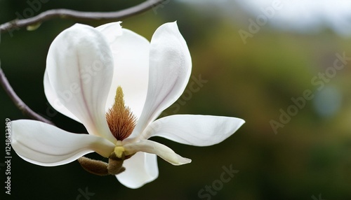 A close-up of a white magnolia flower in full bloom, with silky petals gently curving outward. The delicate texture and soft lighting highlight its natural beauty and elegance.