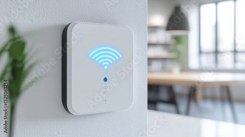 A close-up of a Wi-Fi smart switch with illuminated touch buttons on a white surface
