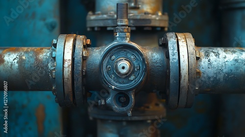 A close-up of an industrial valve connected to a fuel storage tank, metallic textures