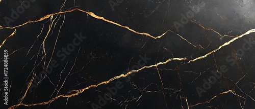 A closeup of black marble with striking golden veins, showcasing a natural stone texture with a luxurious and sophisticated appearance.