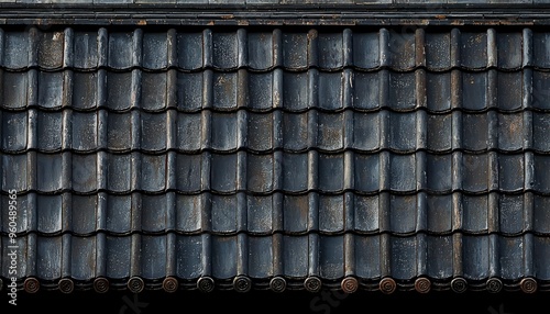 A Close-Up of Black Tile Roofing with Worn Patina