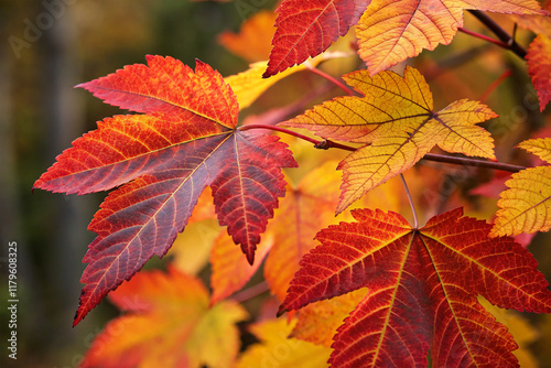 A close-up of colorful autumn leaves