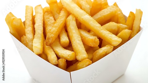 A Close-Up of Delicious Golden French Fries in a White Cardboard Container
