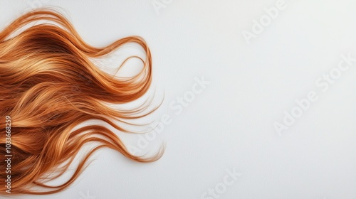 A close-up of flowing, vibrant orange hair against a soft, neutral background, showcasing texture and movement.