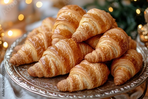 A Close-Up of Freshly Baked Croissants on a Silver Platter