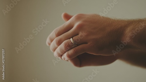 A close-up of hands exchanging rings during a proposal, soft natural light and emotional expressions,