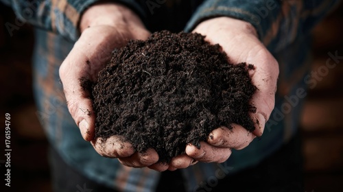 A close-up of hands holding rich, dark soil full of nutrients, symbolizing growth and sustainability in gardening.