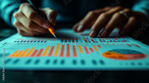 A close-up of hands sketching marketing plans on paper while referencing digital data on a laptop