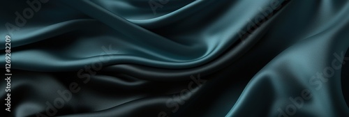 A close-up of luxurious, dark teal satin fabric, showcasing its smooth texture and elegant draping.