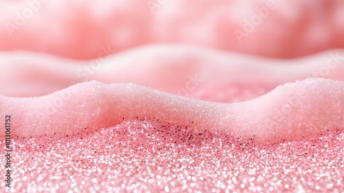 A close-up of textured pink foam, showcasing delicate waves and a sparkling surface, evoking a soft, dreamy aesthetic.