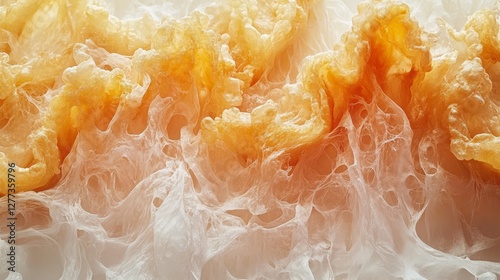 A close-up of textured, translucent material with organic, wavy formations.