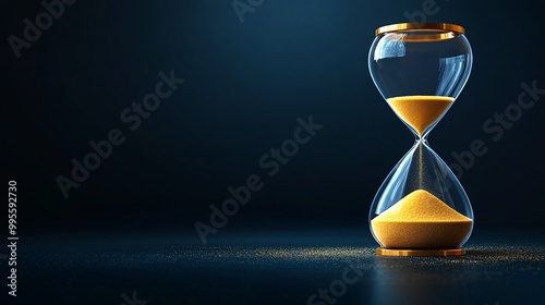 A close-up of the sand in an hourglass falling grain by grain symbolizing the gradual change and growth that comes with time Large space for text in center Stock Photo with copy space