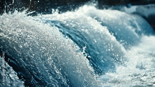 A close-up of the spillway of a dam, with water cascading down, highlighting the power of water management