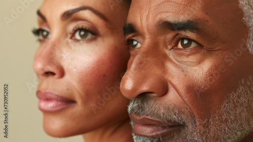 A close-up of two individuals likely a man and a woman with their faces in profile view.