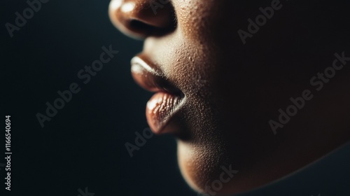 A close-up perspective of a person's lips showcasing texture and detail against a dark background, capturing the essence of intimacy.