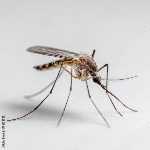A close-up photograph of a mosquito in perfect detail. Every intricate part is visible, showcasing its delicate wings and slender legs