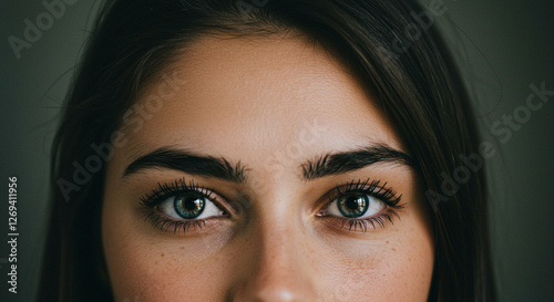 A close-up portrait of a young dark-haired woman, highlighting her natural beauty and expressive features in a soft and intimate setting