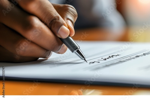 A close-up shot of a hand signing a document with a pen, highlighting the importance of agreements, contracts, and legal paperwork.