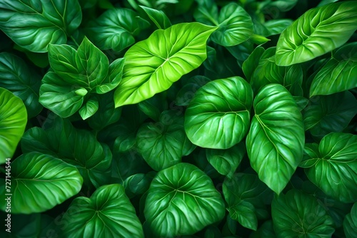 A close-up shot of a lush greenery background, the HD camera revealing the details and patterns of various plants in breathtaking