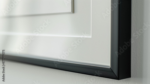 A close-up shot of a modern photo frame with a sleek design fixed on a white background wall