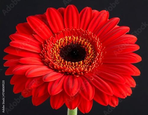 A close-up shot of a vibrant red flower against a dark background