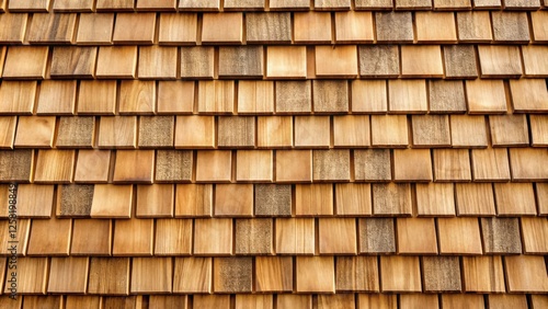 A Close-up Shot of a Wall Covered in Wooden Shingles with an Overlapping Pattern and a Natural Wood Grain